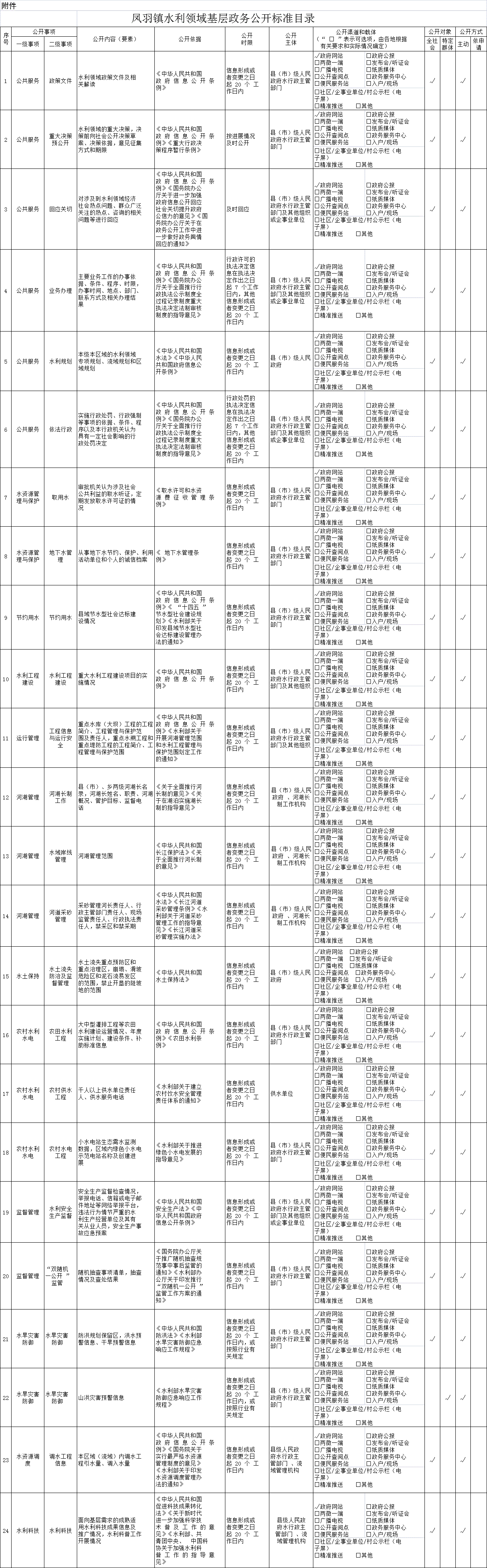 凤羽镇水利领域基层政务公开标准目录