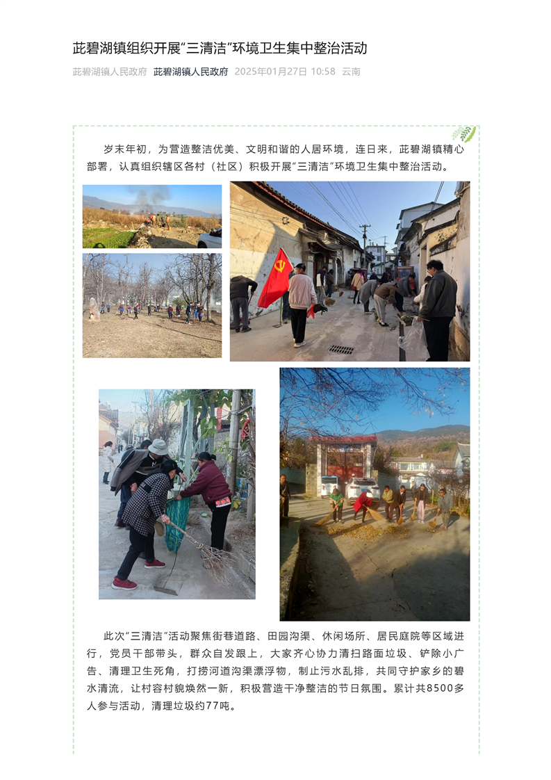 茈碧湖镇组织开展“三清洁”环境卫生集中整治活动